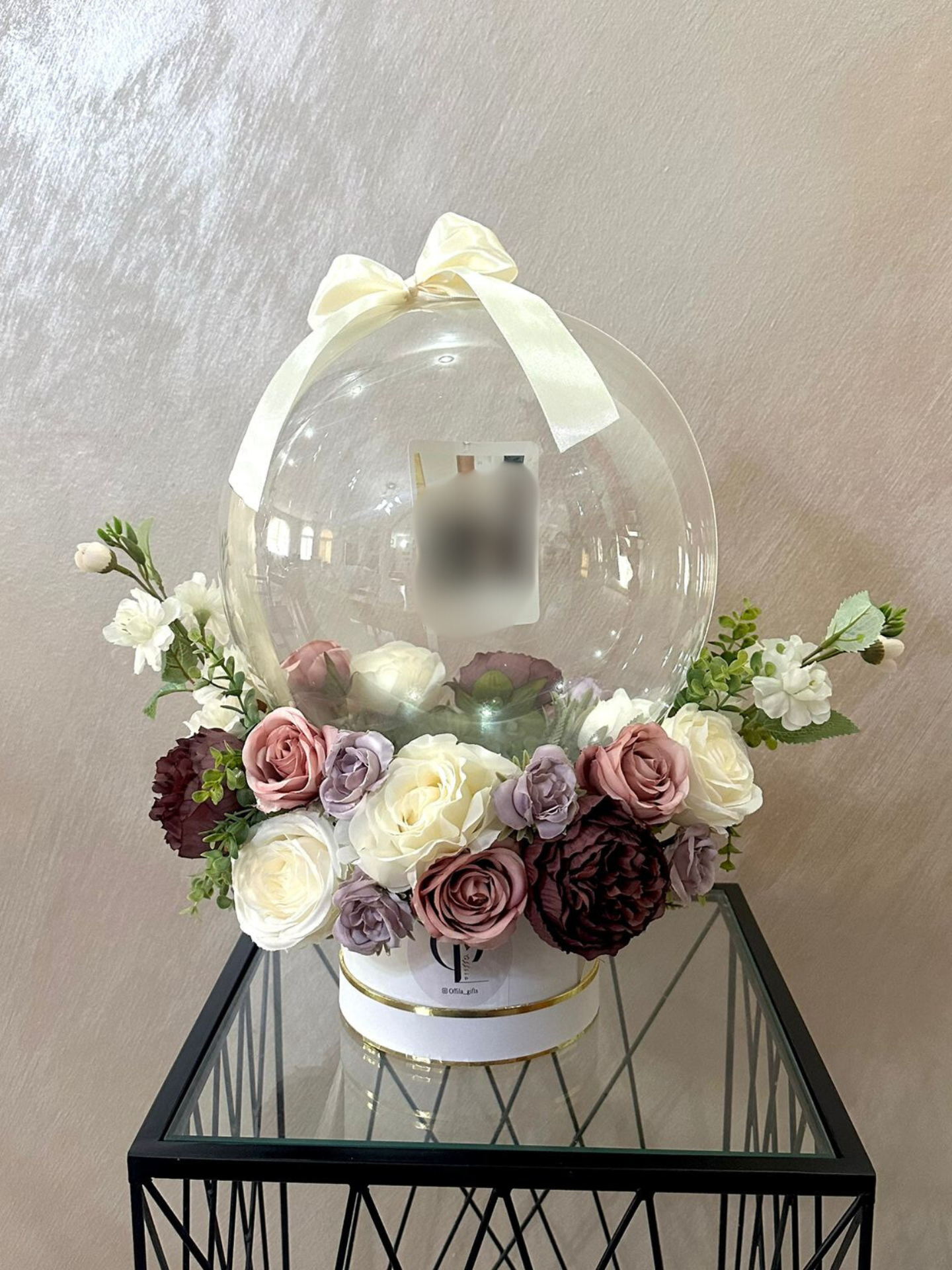 مضمون الهدية: ورد (اصطناعي)، بالون شفاف بداخله صورة، كتابة من اختيارك على البالون